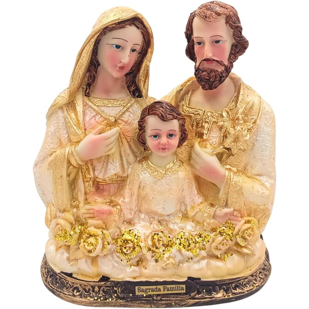 Escultura de Resina Sagrada Familia 20cm de alto. Adorno Pintado a Mano con Acabado Dorado, Imagen Sagrada de Jesús, María y José. Símbolo de Fe, Amor y Protección, Decoracion Para Hogar y Altares