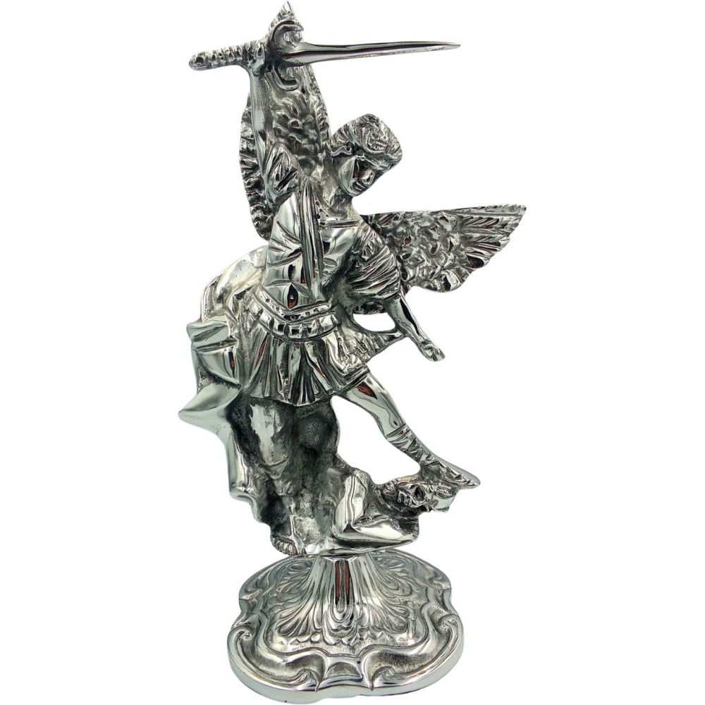Estatua San Miguel Arcángel metal macizo 35 cm sobresaliente con espada detallada y acabado artesanal. Para colocar altares y espacios sagrados. Imponente y fino, es un símbolo de protección y fe