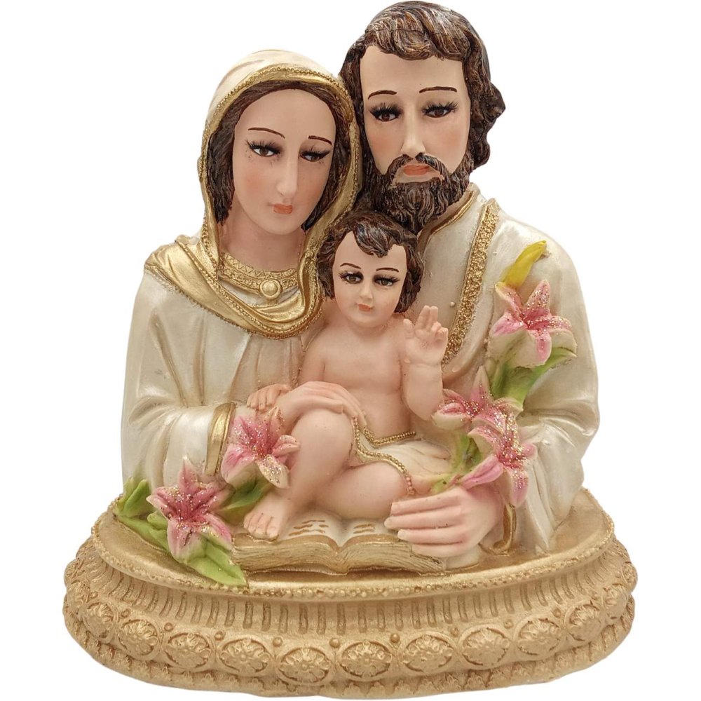 Figura de la Sagrada Familia elaborada en resina, con detalles finos y acabado elegante. Ideal para altares y decoración religiosa, simboliza amor y unidad, aportando paz y espiritualidad al hogar.
