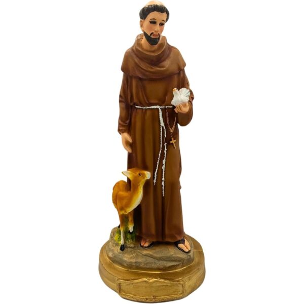 Escultura de San Francisco de Asís en Resina 32 cm con Novena. Símbolo de Humildad, Paz y Amor por la Naturaleza. Figura Religiosa Pintada a Mano con Detalles Realistas, Adorno Ideal para Hogar